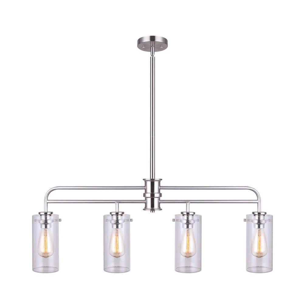 Featuring an elongated neck, arched arms and clean-brushed nickel finish, the ALBANY collection marries drama with industrial-chic style. Clear glass shades show off the soft glow of the Edison-style bulbs and add rustic elegance to any dining space or kitchen island. Create a feeling of harmony throughout your home with additional coordinating Albany light fixtures.