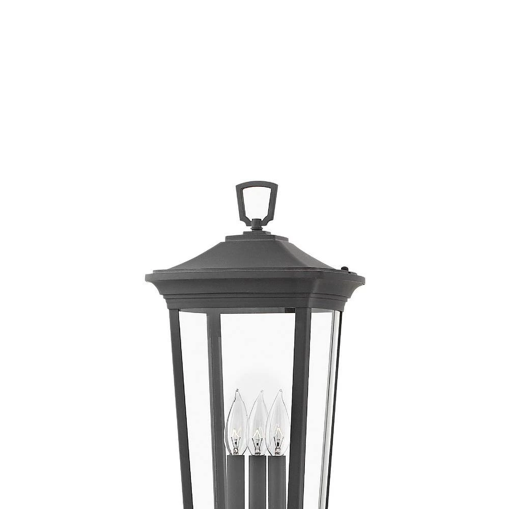 Bromleys handsome silhouette features an updated traditional design that combines elegant and stately details. These dignified die-casted aluminum fixtures convey sophistication in a Museum Black finish that complements any facade. Specialty touches such as a Shepherds Hook decorative scrolled arm and multiple mounting points highlight Bromleys homage to tradition and quality.