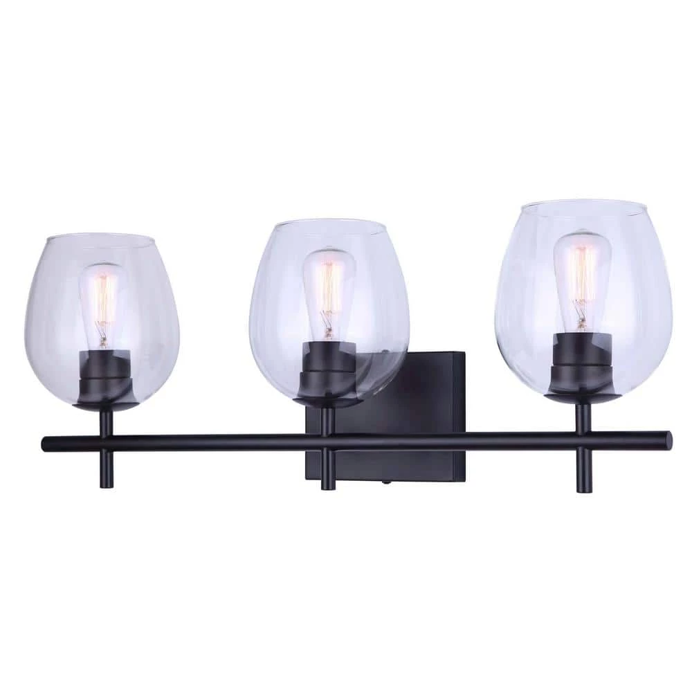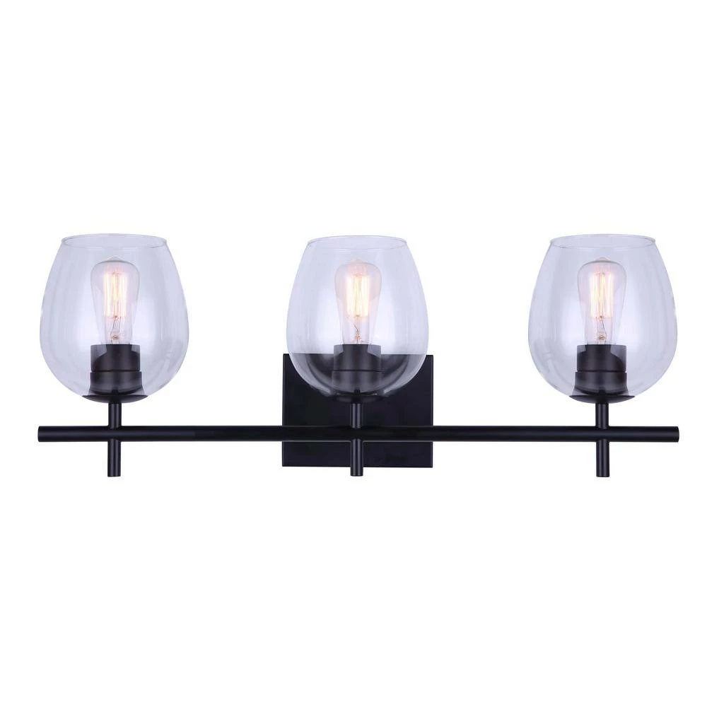 Brighten up your morning and start your day out right with the CAIN vanity light. With 3-lights shining through beautifully shaped clear glass shades and the sleek use of a matte black finish, CAIN will not only emit the right amount of light but it will add an undeniable style to your bathroom or powder room. Available in a gold and matte black finish. Shop the entire vanity collection including a single light wall sconce, 2-light and 4-light vanity.