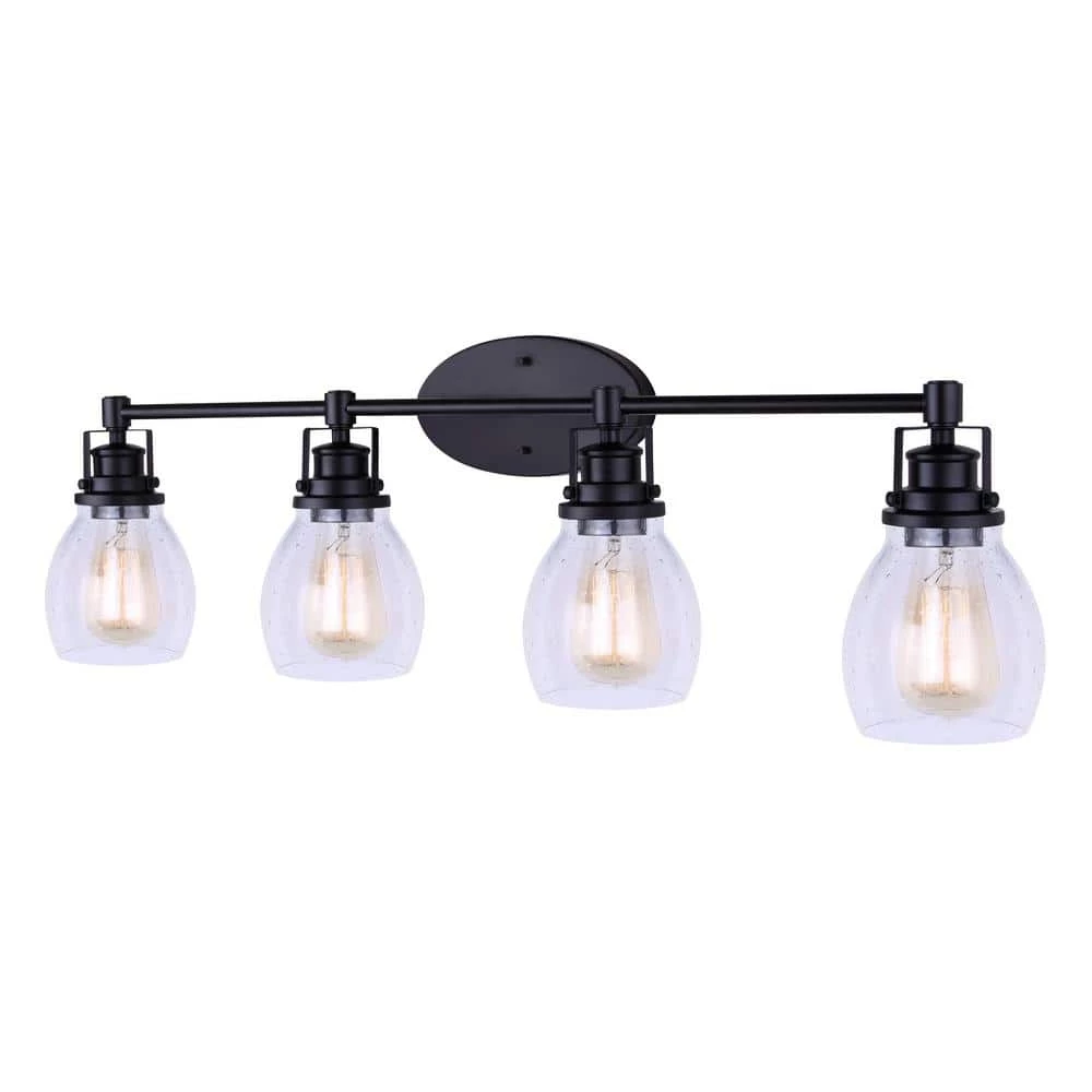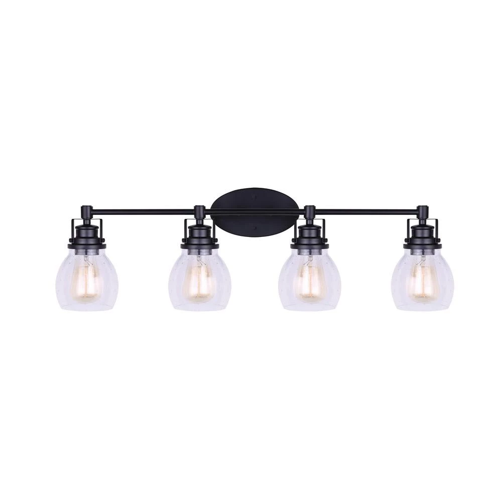 The vintage style of the CARSON collection gives a beautifully modern treatment to the familiarity and comfort of vanity lighting. Available in 2, 3 and 4 light options in matte black with clear seeded glass shades, the CARSON vanity is sure to find a place in your decorating decor while providing the versatility of being mounted in up or down light positions. This product also comes with CANARM’s Easy Connect push in connection system giving homeowners freedom to change fixtures with a safe and secure installation. Complete the industrial feel by adding vintage style bulbs.