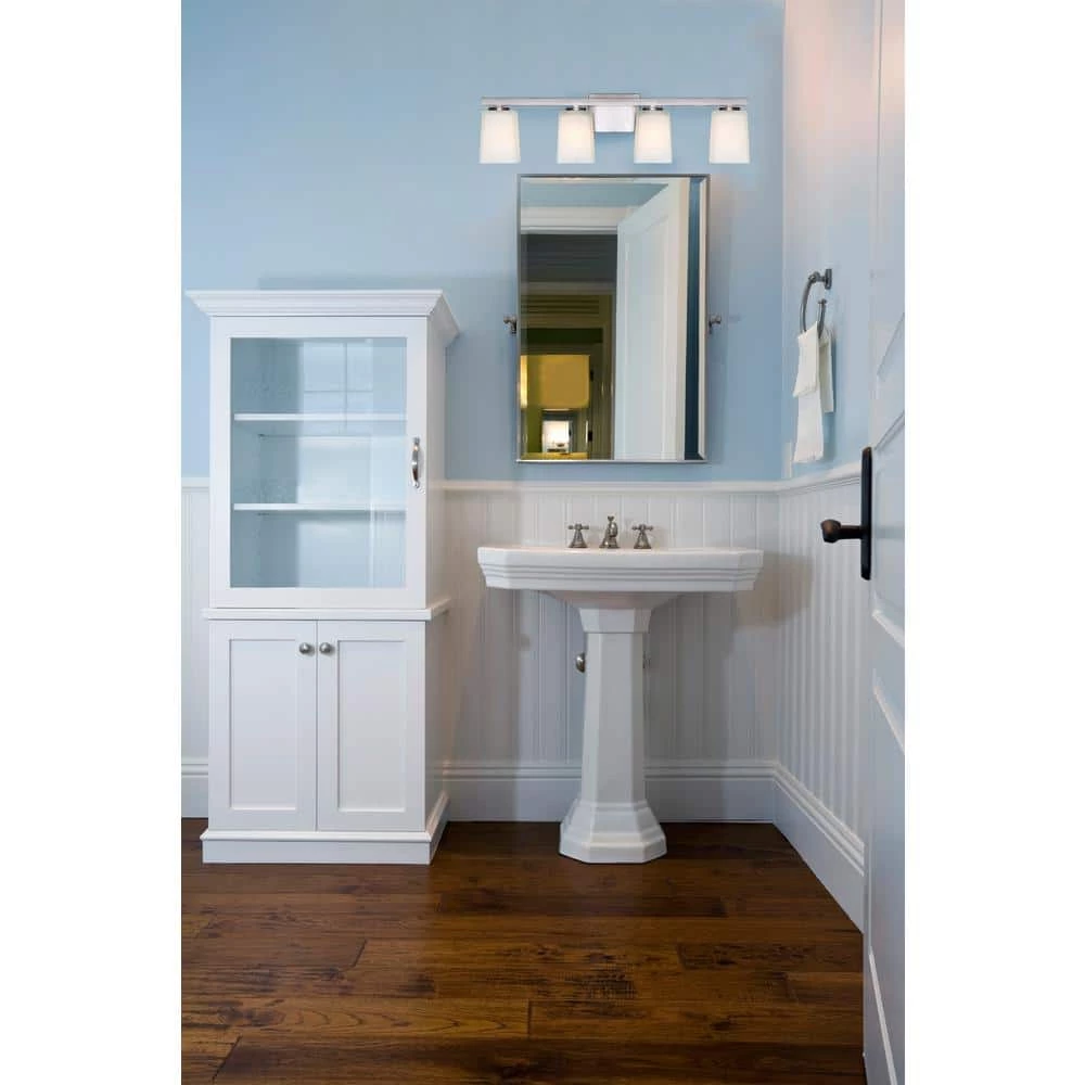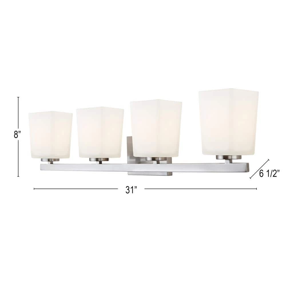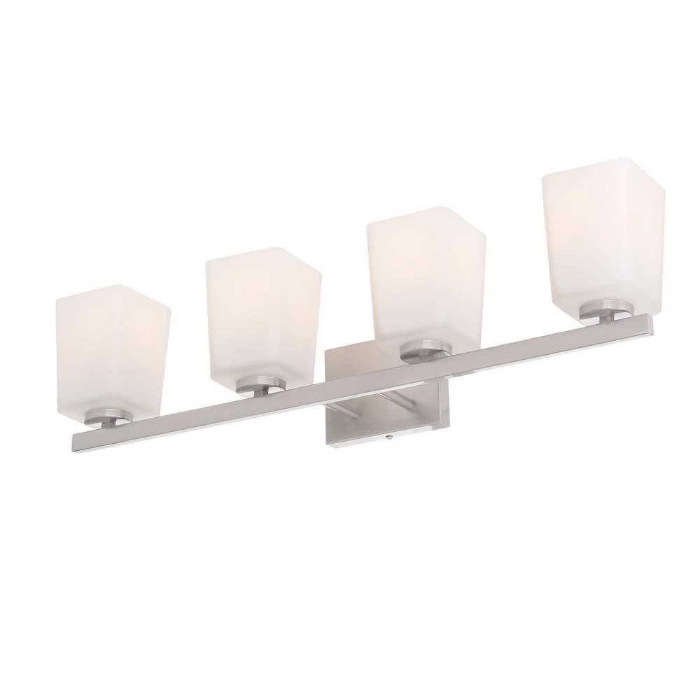 The HARTLEY vanity collection features two welcoming finishes that complement many interior settings. The sleek brushed nickel finish matched with off white opal glass shades is the essence of simple styling. The glass shades are substantial in quality and the vanity bar is made with solid metal built to last. This vanity fixture is ideal over your bathroom or powder room mirror and can be installed as an up or down light. The timeless silhouette of the HARTLEY collection will be a statement piece. Available in a single sconce, 2-light and 3-light options.