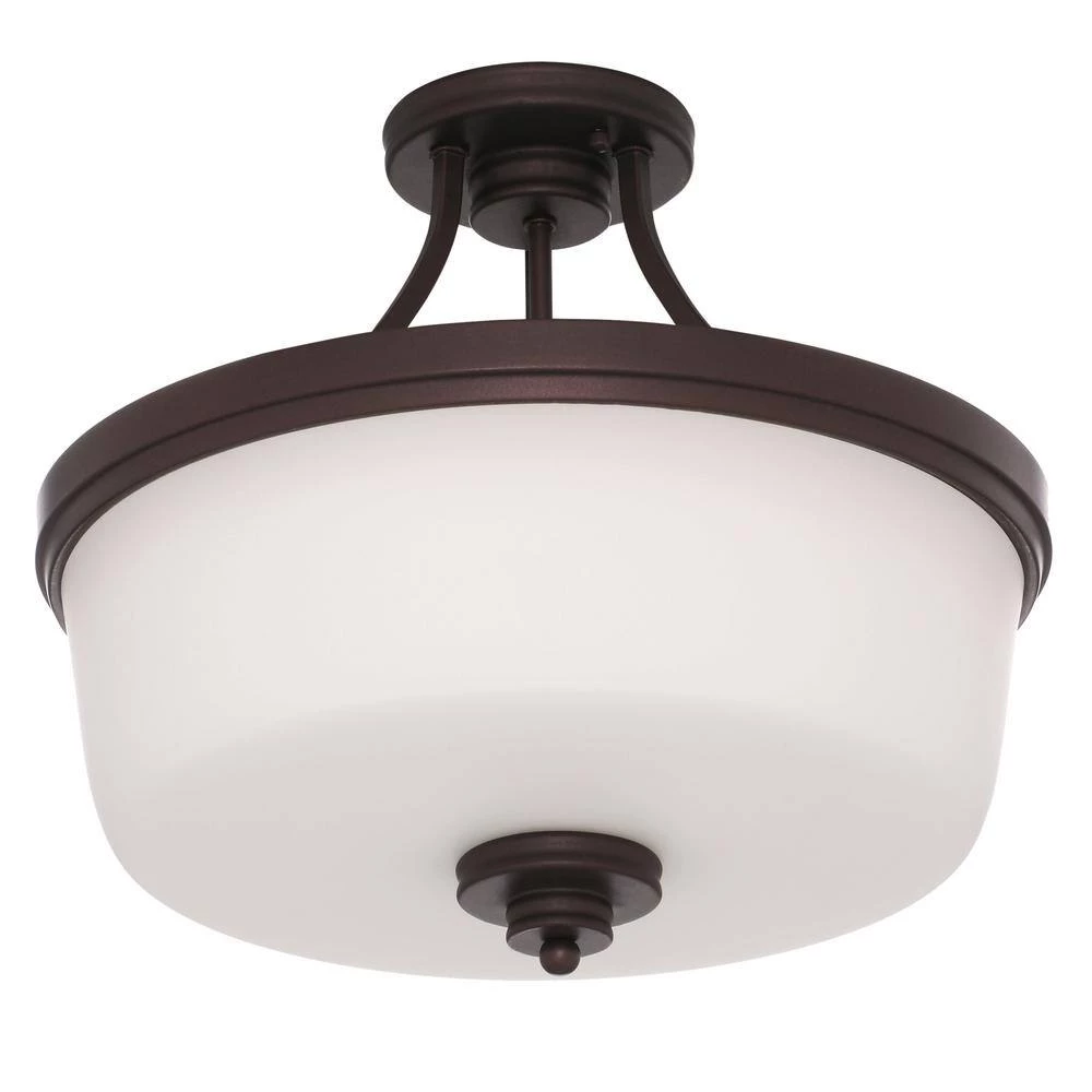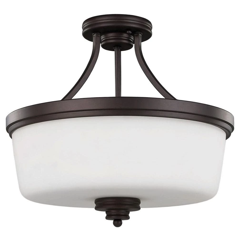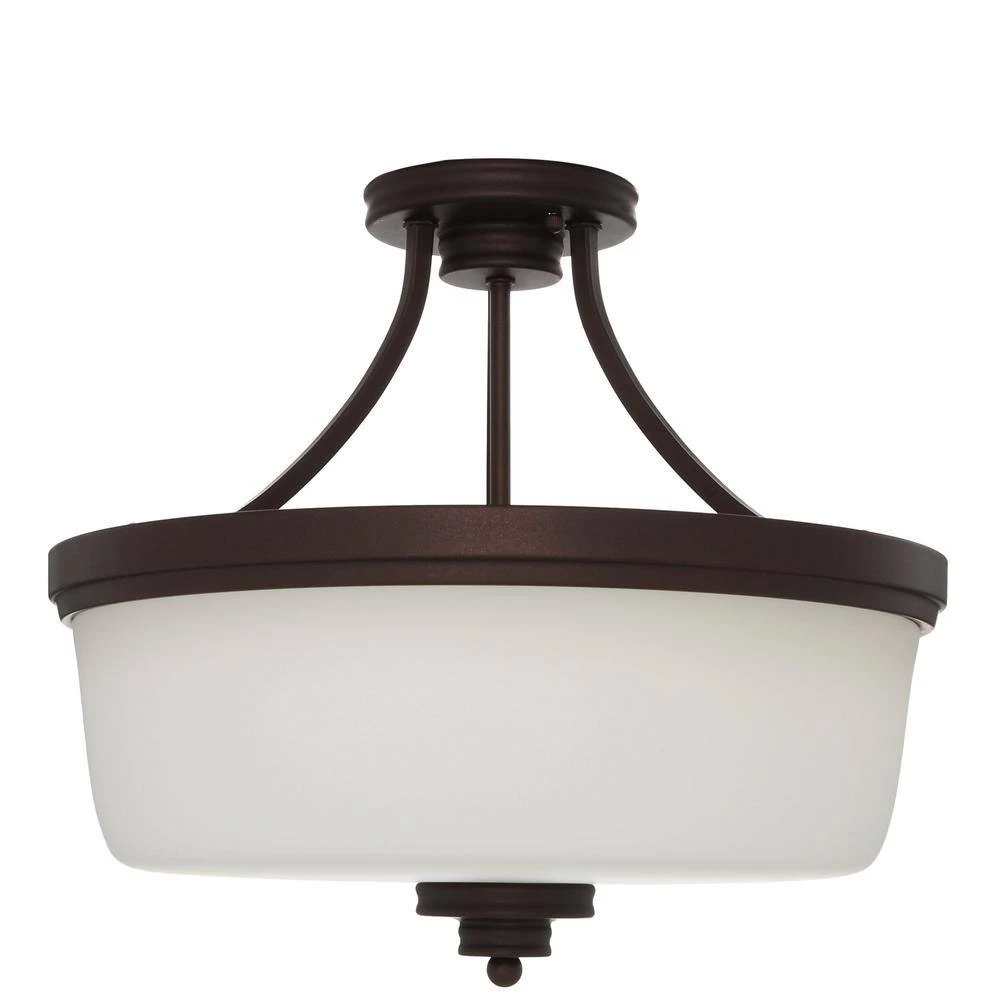 Enrich your home design with the classic style of this 3-light semi-flush mount. Beautifully crafted with gracious arms that extend the fixture from your ceiling, its warm oil-rubbed bronze finish and flat opal glass complement traditional settings. This lighting option is made with durable metal construction and includes installation hardware.