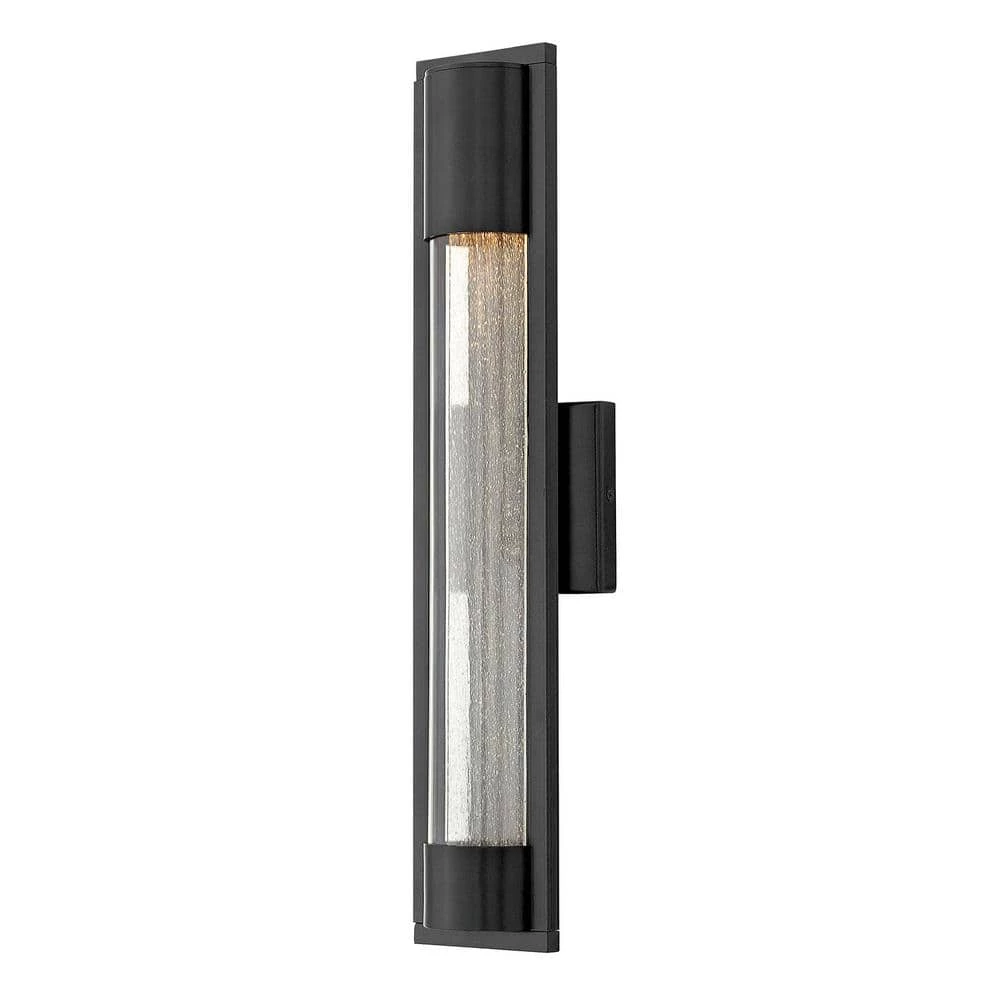 The sleek design of the Mist collection discreetly emphasizes its contemporary heritage. Featuring a prominent interior panel of clear seedy glass captured on both ends and encased in a protective clear acrylic cylinder. Its solid aluminum construction is underscored by a bold Satin Black finish. Mist is both Dark Sky and ADA compliant.