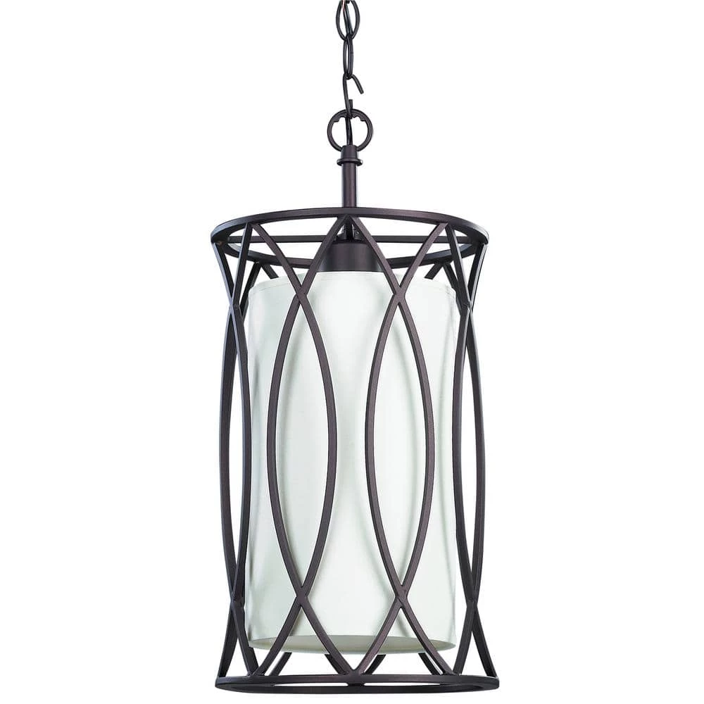 The Monica pendant is a statement piece. Perfect in proportion with lovely oil rubbed bronze detail surrounding the crisp white fabric shade this item is sure to fit in with many decorating styles. It’s ideal for kitchen islands as a single or in clusters as it casts a lovely glow. Comes with 5 ft. oil rubbed bronze chain and 6 ft. cord.