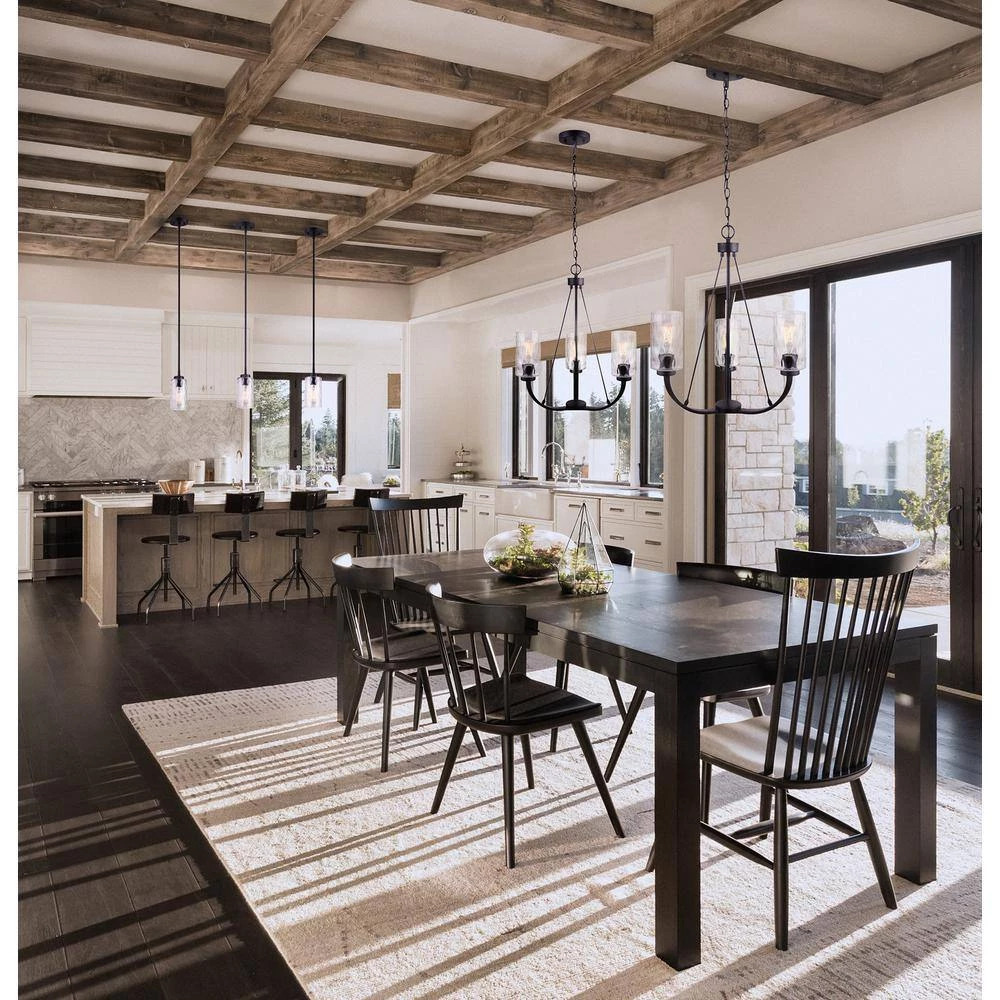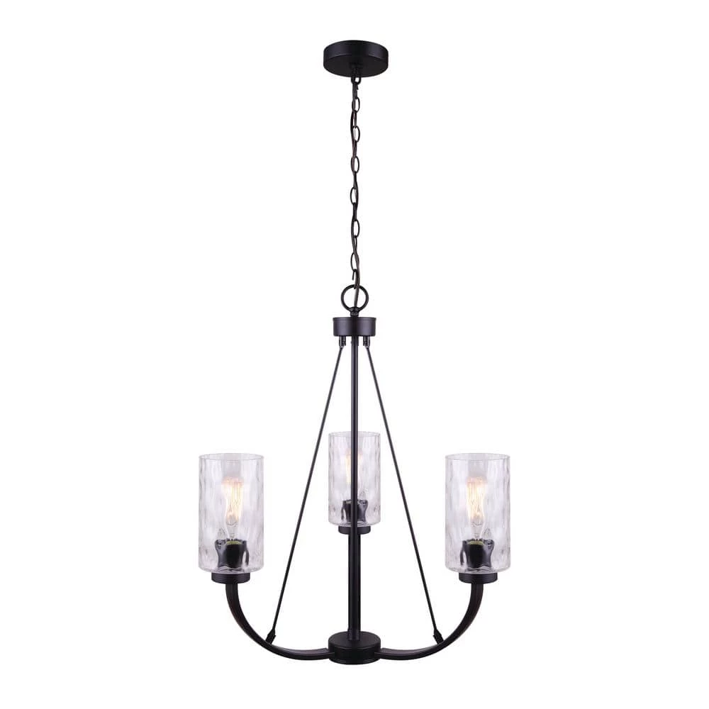 The Newport chandelier reminds you that there is no place like home. Whether you prefer the farmhouse feel in your kitchen, a modern touch to your bathroom or a contemporary simplicity in your living room, Newport conforms to the style and feeling you are working towards in your home with its on-trend matte black finish and thick watermark glass shades. Perfect for the dining and living room.