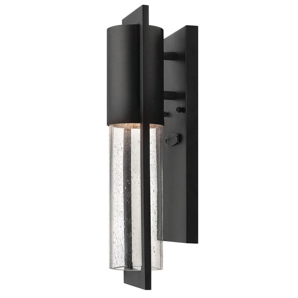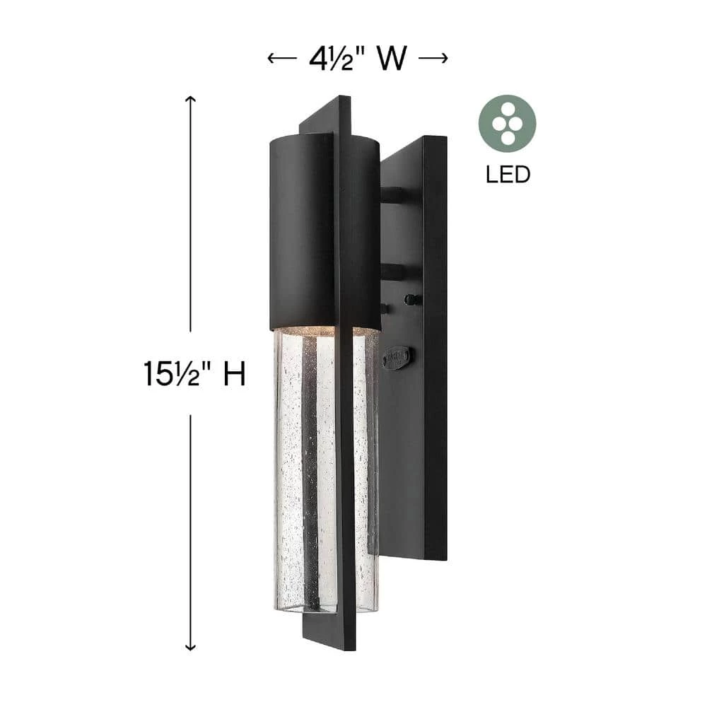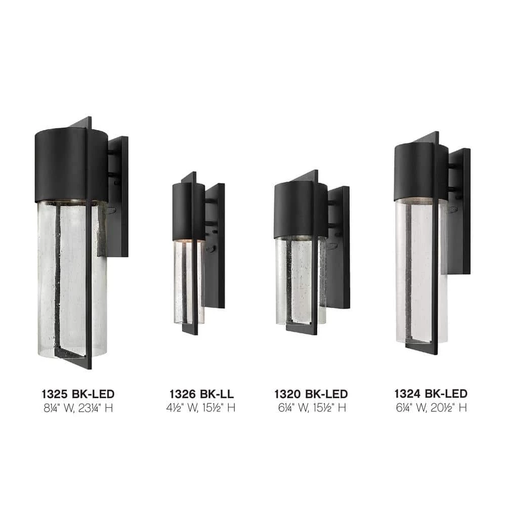 Shelter’s minimalist style in aluminum creates a chic, dramatic statement as the light from above grazes through its clear seedy glass. Shelter comes standard Dark Sky compliant. Beautifully compliments any outdoor space.