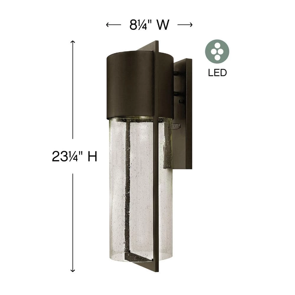 Shelter’s minimalist style in aluminum creates a chic, dramatic statement as the light from above grazes through its clear seedy glass. Shelter comes standard Dark Sky compliant. Beautifully compliment to any outdoor space.