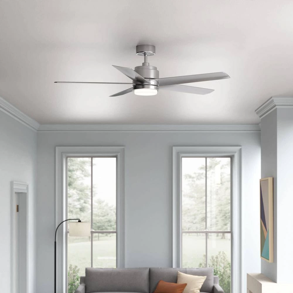 - Classic Transitional Look: This 5-blade fan is available in four finishes that complement most color palettes: Appliance White, Brushed Nickel, Matte Black and Metallic Matte Bronze.